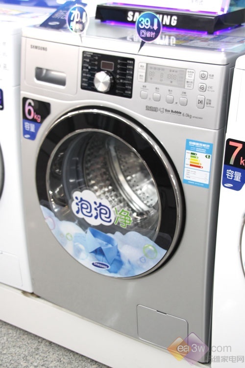 前面说过,这款机器采用了三星全新研发的“泡泡净”技术,该技术可在洗涤最初,利用泡泡发生器将洗涤剂转化成丰富细腻的泡沫,从而使洗涤剂更加彻底的发挥作用。从而达到省时39%、节电70%的效果。