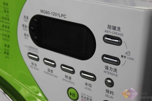 操作面板设计上,美的MG60-1201LPC洗衣机表现十分出色,配备了超大液晶显示屏及标识清楚的按键,可以预约洗涤、调节水温、转速、水位,并且提供防皱洗和强力洗功能选择,使洗涤过程更加容易掌控。
