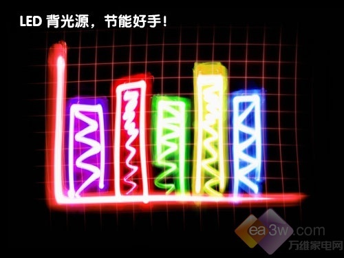 那么为什么LED背光源液晶电视会更加节能呢?我们来看一道简单的算术题:一台普通背光源的55英寸液晶电视工会和一般在300W左右,而节能的55英寸LED背光源液晶电视功耗仅在120-150W,按照普通液晶电视6万小时的正常寿命计算,LED背光源液晶电视耗电量总计7200-9000度,而普通的液晶电视耗电量则将达到惊人的18000度,以为当前普通居民用电0.5元/度计算,就可以省下至少4500元之多。如此省电,如此省钱,跑赢CPI也不是什么问题。