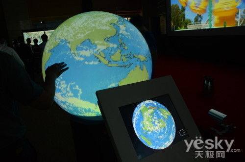 内投球投影技术是一种新兴的展示技术,打破了以往投影只能平面规则图形的局限,利用特殊光学镜头,将普通的平面影像进行特殊的变换,使用投影机EB-C520XB投射到一个球形屏幕内,形成一个内投的球体影像。内投球采用高流明亮度的投影机EB-C520XB,可以播放各种经过视频变幻的影像,使整个球体看起来就像一个科幻的水晶球,可以很好的吸引参观者的眼球。