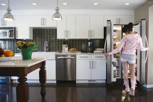 将淡淡粉色和简洁白色作为冰箱的主色调,使厨房显得更加具有温馨气质,这是很多年轻女孩儿都非常喜欢的一种风格。