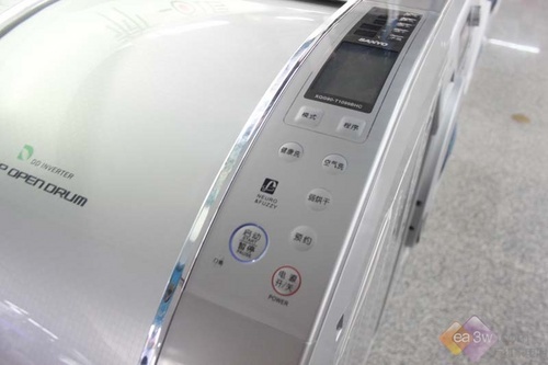 三洋XQG90-T1099BHC采用顶开式舱门设计,笔者在卖场试用时发现其最大的特点就是取衣放衣完全不用弯腰,有效减轻了消费者的腰部负担。