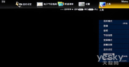 在工具菜单中,夏普AQUOS LCD-70X55A液晶3D电视依然提供了视听模式、图像、音频等固有菜单,用户通过它们就可以根据自身使用环境的不同随意选择各种影像模式了。