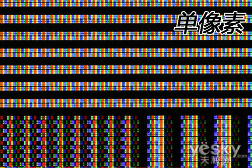“Quattron(贵丽泷)四色技术”不用我在此多做解释,大家从上图中我们可以明显的发现其像素结构与传统的“RGB”液晶面板不同,增加了黄色次像素,而且其像素结构大小也各不一样,红色与蓝色次像素结构较大,黄色与绿色次像素结构较小。