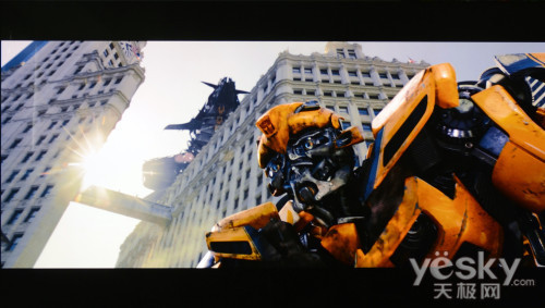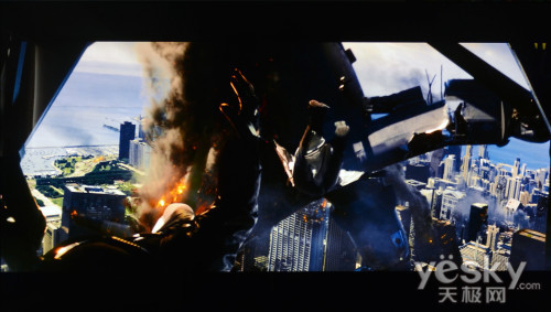 本次屏摄使用的片源为《变形金刚3》全高清预告片,使用高清播放机与夏普AQUOS LCD-70X55A液晶3D电视相链接,接下来让我们通过屏摄来直观的感受一下夏普AQUOS LCD-70X55A液晶3D电视的图像表现能力。 (屏摄样张因拍摄后的多次数码转换以及读者的显示设备性能不一则仅供参考)
