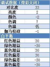 通过几项重要数据的调节,我们将夏普AQUOS LCD-70X55A液晶3D电视的图像调校到了一个较为完美的数据,色温已经非常接近完美值,RGB三原色也得到了最大程度的还原,伽马值更是达到了2.2的完美值,果然不愧为王者机型。