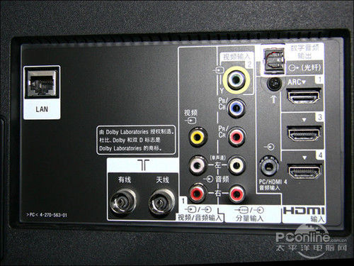 接口方面,索尼CX520配置比较丰富,拥有4组HDMI高清影音接口、2组USB接口、1组VGA接口、2组视频输入接口、1组光纤接口,46和32寸还配置了网络LAN接口。