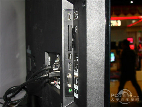 在接口设置上,三星D5000分为下置与侧置两个接口区,设置比较合理,在接口配置上拥有4组HDMI接口、2组USB接口、1组网线接口、1组PC输入接口、1组RF输入接口、1组AV及色差转换端子。最近很多电视产品都进一步缩小接口区,将模拟的色差及AV端子以转接的方式与电视相连,这也说明HDMI接口已经基本上普及实现一统江湖的局面。