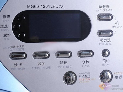 操作面板设计上,美的MG60-1201LPCS洗衣机表现十分出色,配备了超大液晶显示屏及标识清楚的按键,可以预约洗涤、调节水温、转速、水位,并且提供防皱洗和强力洗功能选择,使洗涤过程更加容易掌控。