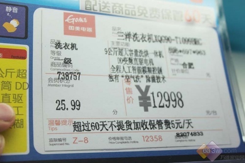 滚筒洗衣机的出现满足了很多消费者对于高端产品的需求,不过随着技术的不断升级,大容量、变频、洗干一体机已经成为洗衣机市场的潮流趋势,目前几乎所有一线品牌均有自己旗下的主打机型而笔者了解到三洋推出了一款蒸气滚筒洗衣机—XQG90-T1099BHC,目前标价为12998元,相对于上市初期直降了3000元,追求高端的朋友千万不要错过。