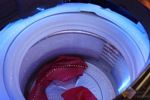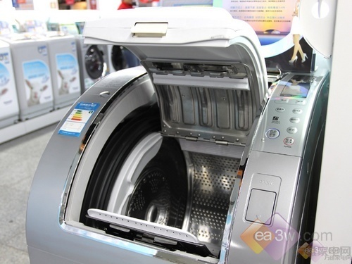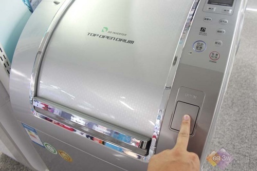 三洋XQG90-T1099BHC采用顶开式舱门设计,笔者在卖场试用时发现其最大的特点就是取衣放衣完全不用弯腰,有效减轻了消费者的腰部负担。