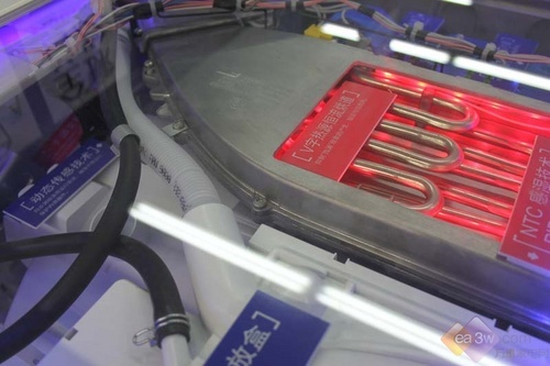 此外,这款洗衣机还有热风清新功能,能通过位于洗衣机内部后方的鼓风扇将空气鼓入加热室,空气在通过加热室时被加热形成强劲的热气流,然后进入滚筒内,高温气流穿透衣物时分解气味粒子并杀灭深藏于衣物的螨虫等有害微生物,同时使衣物内隐藏的水分蒸发成水蒸气,最后携带了大量气味粒子以及水蒸气的高温气流经过冷凝器最终被凝结成水排出机外。经过热风清新处理,不但可有效去除有害微生物,更可使衣物内容易导致霉变、滋生细菌的水分得到根本清除。