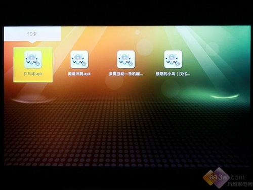 为了便于购买的用户进行体验,TCL L43V7300A-3D在随机赠送的2G SD卡中放置了乒乓球、奥运冲刺、愤怒的小鸟等游戏安装程序,用户只需要点击安装就可以安装到电视机上了。