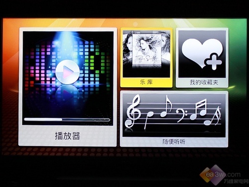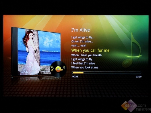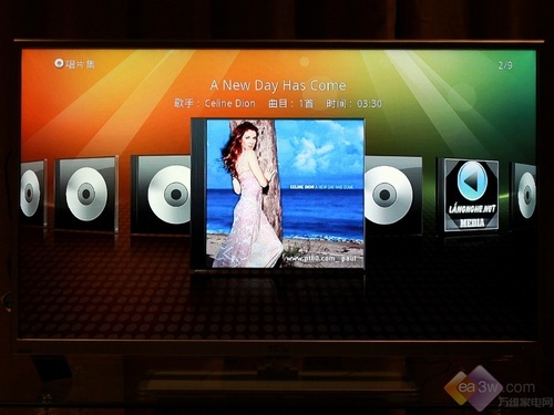 TCL L43V7300A-3D的音乐播放界面也很有唱片收集箱的味道,如果音乐文件还配有图片,还有封面显示,很有选唱片的感觉,更加人性化。