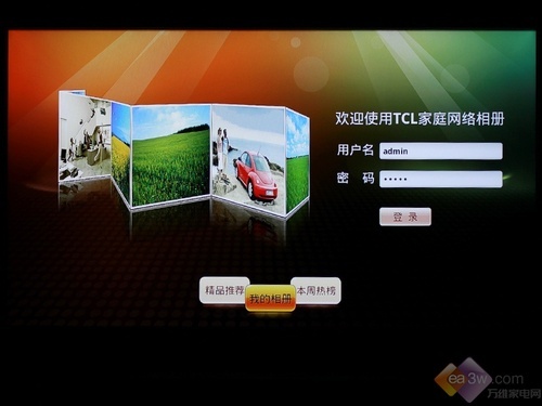 作为一款智能云电视,TCL L43V7300A-3D给网友们提供了一个照片的存储空间,用户可以根据包装箱附件中提供的用户名和密码进行登录独享,将照片传送上去之后,关联你的朋友就可以直接从电视机进行浏览与分享。