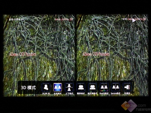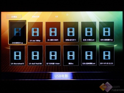 通过试用可以得知,TCL L43V7300A-3D通过USB接口可以全面兼容市面上主流的3D视频格式文件,比如左右的AVI 3D格式、左右的TP 3D格式、上下3D格式、交错3D格式等等,可让用户方便地观看各种格式的3D影片,播放时也需要选择相对应的3D模式,才能切换到3D影片状态。