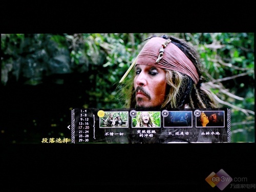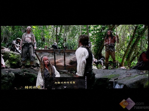 前面给网友们欣赏了《加勒比海盗4》的3D版,当然2D版本也相当精彩不可错过,下面笔者就为网友们发布几张TCL L43V7300A-3D播放蓝光版《加勒比海盗4》的实拍照片。