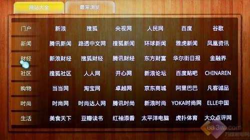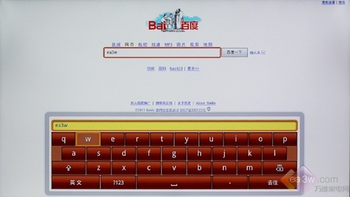 当然,用户也可以根据自己的需求,输入网址浏览网站,比如百度、万维家电网。点击网址输入栏时,出现一个键盘类型的界面,有字母、数字等相关标识,用户可以通过遥控器的左右按键移动鼠标操作。TCL L43V7300A-3D液晶电视还可以随意点播视频节目,现在市面上能做到这一点的云电视寥寥无几