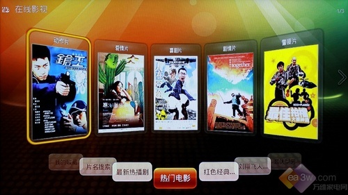 TCL L43V7300A-3D液晶电视在线影视的内容界面相对于此前TCL互联网电视炫丽了不少,影片分类和影片选择都采用动态滚动方式体现。