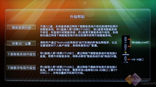 智能电视很受用户喜欢的一个地方就是可以紧跟科技脚步,升级到最新的内容。TCL L43V7300A-3D设置了智能系统升级和数字电视升级两大内容,可以通过USB接口和网络在线升级直接完成。