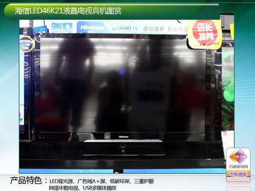 海信LED46K21液晶电视除配有主流的HDMI接口、AV接口、VGA接口以及色差分量接口等,该机器还具有T.USB新一代高速双流媒体功能,完全满足一般家庭的需要。