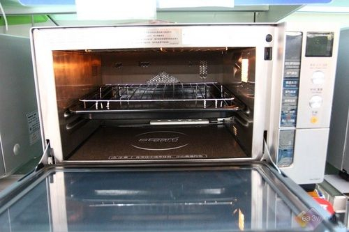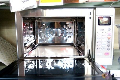 纵拉门设计使得该款微波炉有更大的操作空间,取放食物时也因为拉门的保护防止了突然掉落的危险,同时也可以将拉开的炉门当作一个小型操作台,不过纵开设计的微波炉将不能实现高位摆放,也是一个小小的不足之处。
