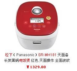 松下SR-MH181 电饭煲是电饭煲中的贵族。它采用备长碳黑锅科技,在炊煮过程中,能使电饭煲远红外线放射率大大提高,增强加热效果和热穿透力。使细微水分子团直达米芯,令米饭颗颗饱满、粒粒香浓。而且它的新炫防溢保湿帽,设计精密新颖,可拆洗防溢,还可排除煮饭时的多余水蒸气,又可有效保湿。蒸煮的米饭鲜美宜人。更重要的是它的蒸架是可伸缩的,可随您需要随意调节。现在售价为1329元,有需要的朋友不妨关注下松下官网。