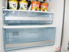 在结构上,冰箱的中门设计比较特殊,抽拉设计保证冰箱食物被便捷的拿取。