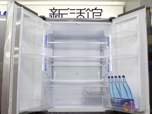 这款冰箱内部选用人性化的设计模式,可折叠式的存放隔板适合大体积食物,自动制冰装置则便于人们注水、取冰。