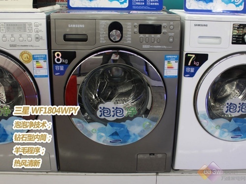 噪音、费电、洗净度低一直是阻碍滚筒洗衣机发展的几大难题。当你正为以上因素对于选择波轮还是滚筒犹豫不决时,三星泡泡净系列产品的推出,改变了这一现状。三星泡泡净系列滚筒洗衣机—WF1804WPY,目前售价5590元左右。