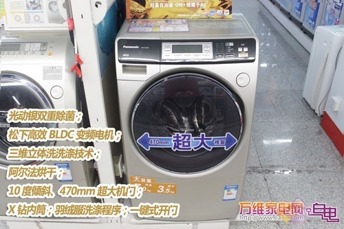 在斜式滚筒洗衣机产品中,松下电器可以说是当中的领先企业。今天我们就为您带来一款松下阿尔法系列中的旗舰机型XQG70-VD76ZN。并且该机也是松下唯一一款具有光动银技术的产品,该机洗涤容量7kg,烘干容量3.5kg,目前售价9998元。