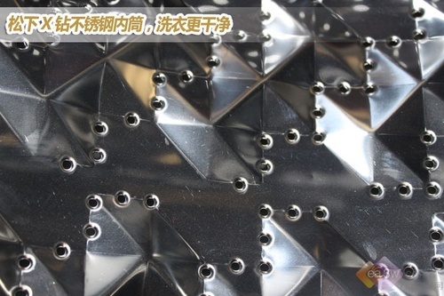 内筒设计方面,内筒壁上布满了凸起的圆点,可以有效降低内筒壁与衣物之间的摩擦,降低了衣物的磨损度。