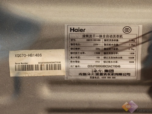 海尔XQG70-HB1486采用了海尔最擅长的简洁风格,蓝色操作面板+白色箱体,简单大方而且极易搭配各种不同风格的家具产品。