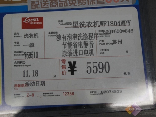 三星洗衣机WF1804WPY