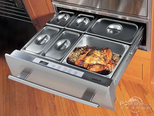 这种暖盘器不少知名的厨房家电厂商都会生产,在美国是比较常见的家电产品,一般都采用了不锈钢的面板,为内嵌式的设计,通常会设计在烤箱旁或者灶具下面。