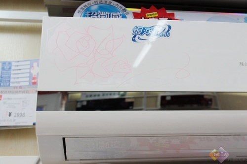 空调采用粉色花纹设计,面板上自然又妖娆的绽放着美丽的花朵,同时,空调的显示采用镜面条纹,开启后就会自动进行显示。