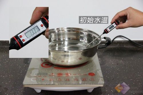 先将1.5L常温下的水注入汤锅中,同时测得初始水温为13.3℃。