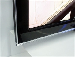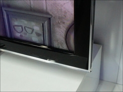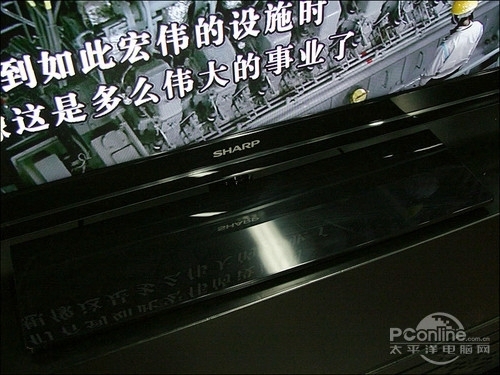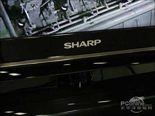 夏普LX430的底座为黑色抛光塑料材质,底座没有转轴设计,因此无法调整电视画面角度,在夏普商标下方有一条香槟金色的装饰条。