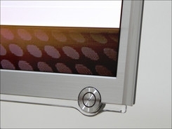 TCL V7300展现了简洁的机身,边框表面并没有过多的标识和印漆。从下面的图片也可以看到产品的超窄边框,也显的TCL的造工相当不错。屏幕左下方贴有主要的卖点,内置android系统。而右下方则有电源的开关,采用蚀纹设计,开启电视时候,会亮灯提示。