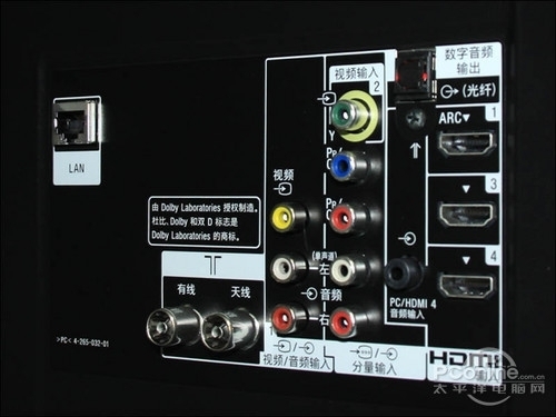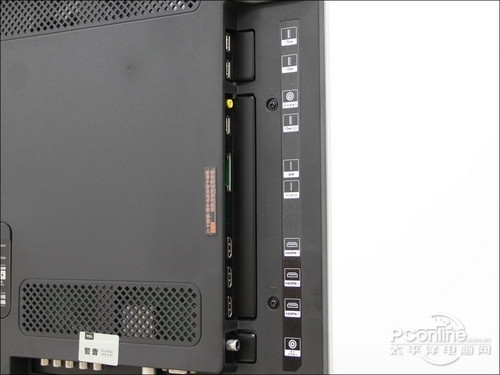 在接口设置上,LX430仅提供了后置接口区,在电视壁挂时可能会造成连线的不方便,后置接口区安排了3组HDMI接口、1组色差端子、1组AV端子、1个电视信号接口与VGA接口,虽然接口数量一般,但是种类上比较全面,可以满足大多数用户的需求。