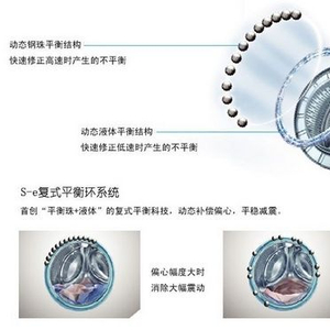 平衡珠与动态液体搭配的复式平衡科技,可以在洗衣机运转时,动态补偿因偏心幅度过大所带来的大幅震动,平稳减震。