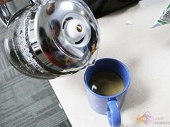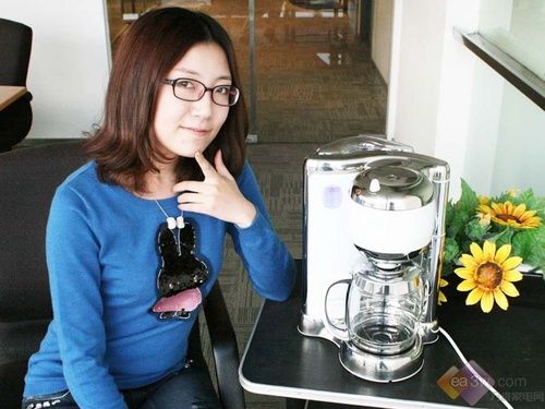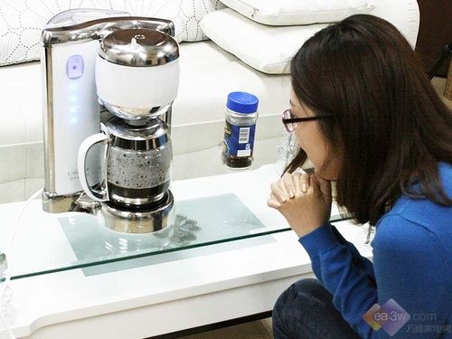 惠子将咖啡倒入过滤网中,我们选择的时间为3分钟,也就是在三分钟之内将咖啡冲好。等待时我们看到,咖啡机已经开始运作,并且直接将冲泡好的咖啡放入杯体内,过滤网能够有效的滤除咖啡中的杂志,保证咖啡口味的纯正。