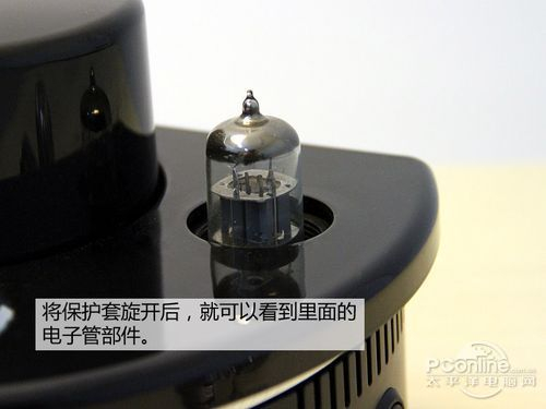 保护电子管的格栅,只需要旋转就可以取下了,里面就是这套系统中比较重要的电子管。保护栅的材质为塑料喷漆仿金属材质的,在质感上稍逊一筹。