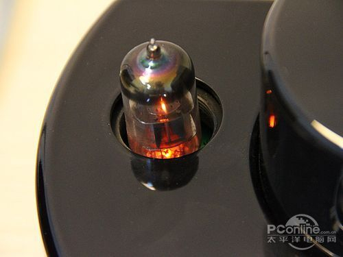 作为套装中最为重要的部分,胆机功放机身采用了更为厚实的机身材料,黑色的金属与钢琴烤漆机身使得整体档次提高不少,同时在侧面还有镀铬的银色饰边。机身上部则有着两个很大的电子管以及信号输入选择旋钮与音量调节旋钮。