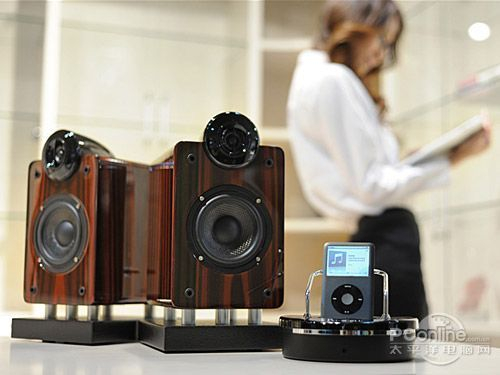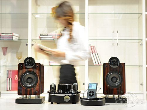 为了实现和iPhone、iPod等设备相连,这款HIFI套装主要拥有3部分组件,分别是苹果底座、胆机机身与音箱。将三部分组合在一起,高低错落有致,也别有一种美感。