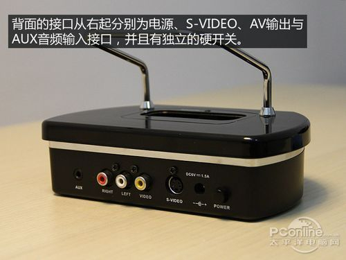 苹果底座其实就是一个苹果设备的转换设备,可以通过数据接口将音频及视频信号进行输出,其中包括AV接口、S-VIDEO接口,连接音箱也是需要这两种接口的其中一种相连。其中,苹果底座还附带了硬开关与AUX附加声音输入接口,让这款套装的音源有了更多的选择。