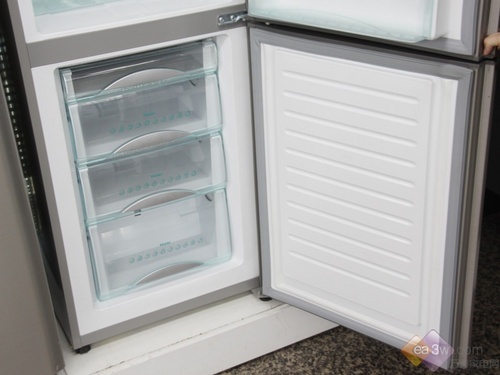 美菱BCD-350W冷冻室被设置于底部,选用抽拉的开门设计更加便于操作者的操作,同时,具有半自动制冰装置,突出了实用性与便利性。