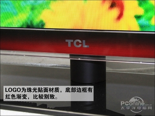 屏幕下方有着TCL的品牌LOGO,这一标志为珠光贴面,在一定角度下会反光,边框下部为红色向上渐变为黑色,是机身正面的设计亮点之一。