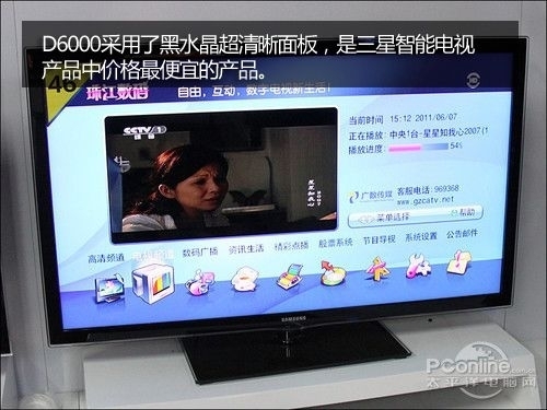 三星D6000也是一部3D电视,采用了主动快门式3D技术,拥有全高清显示3D画面的优势。同时D6000也搭载了三星的“Smart Hub”智能应用中心,可以在线浏览网页与微博客户端等,并且可以利用应用程序商店更新下载程序。