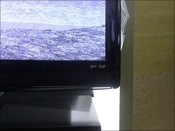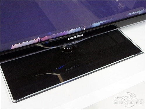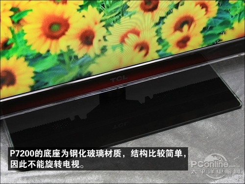 P7200的底座同样为玻璃材质,虽然外观比较有质感,可是重量有些重,不过这也可以起到使电视摆放更为稳固的作用。这一底座的设计较为简单,并没有设计转轴以旋转电视,在使用上会有一点麻烦。